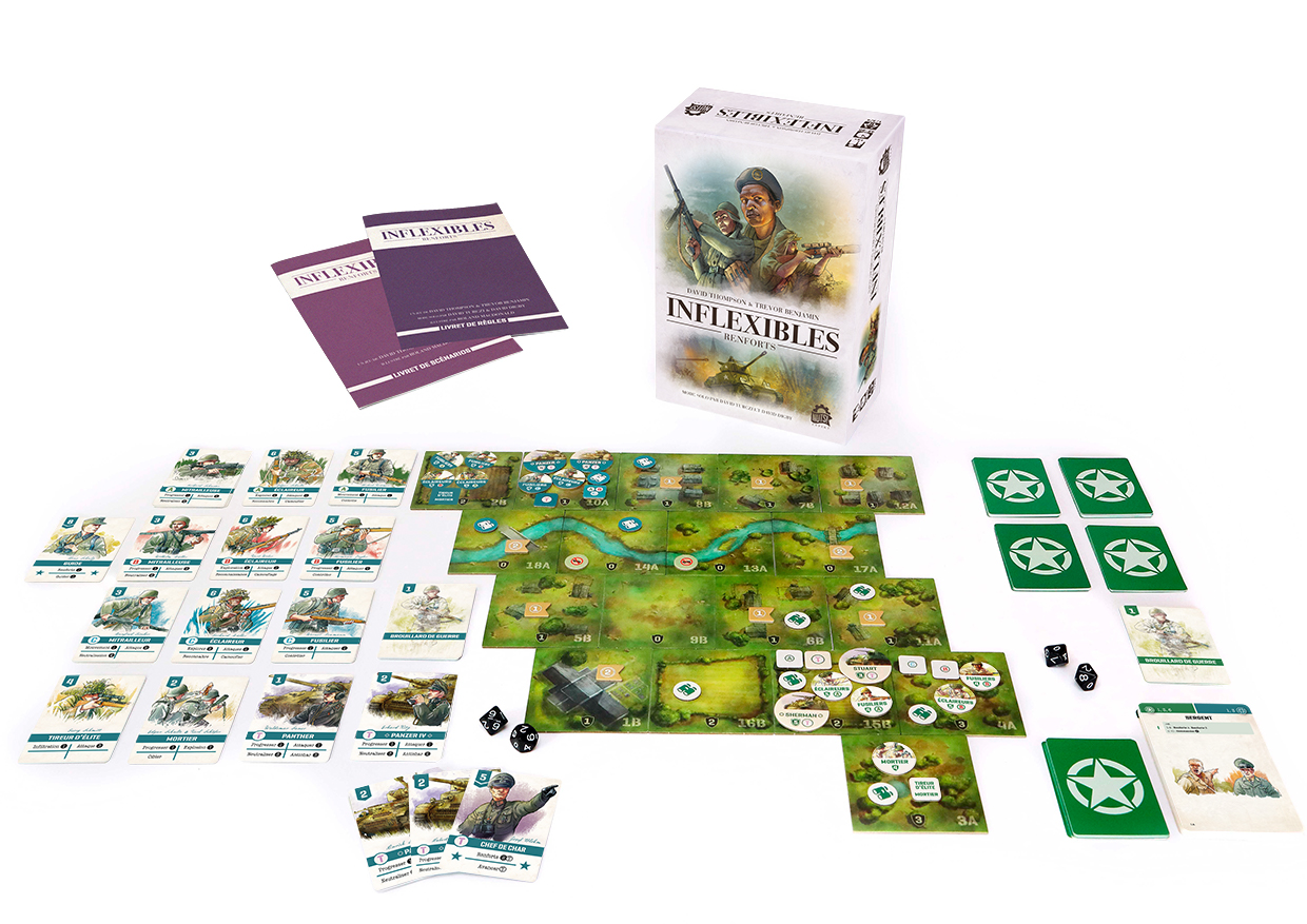 Inflexibles : Renforts est une extension à la fois pour Inflexibles : Normandie et Inflexibles : Afrique du Nord.Grâce à Renforts, vous pourrez jouer en solo à tous les scénarios de Normandie et Afrique du Nord, ainsi qu'en équipe à quatre.