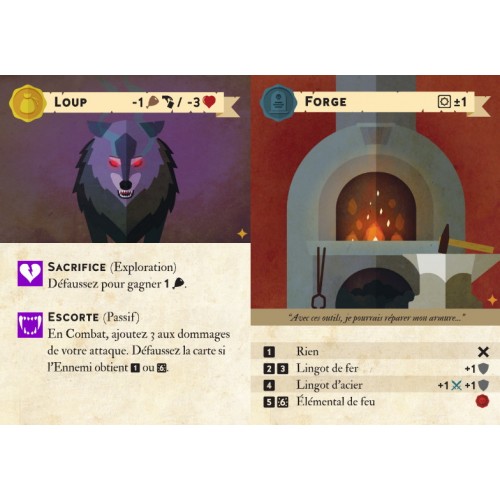 Ces deux cartes promotionnelles pour Mini Rogue (le loup et la forge) étaient disponibles pendant Essen 2021.