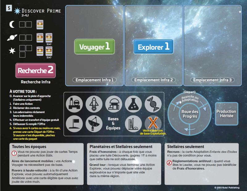 Cette extension introduit des entreprises uniques via 14 QG différents, chacun vous plaçant aux contrôles d’une corporation, d’une agence ou d’une institution différente avec ses propres capacités et missions. Chaque QG possède des cartes de départ, des infras, des avantages et des restrictions pour chaque époque, qui évoluent dans Planétaires et Stellaires. Chacun offre une option de profit final alternative en fin de partie.
